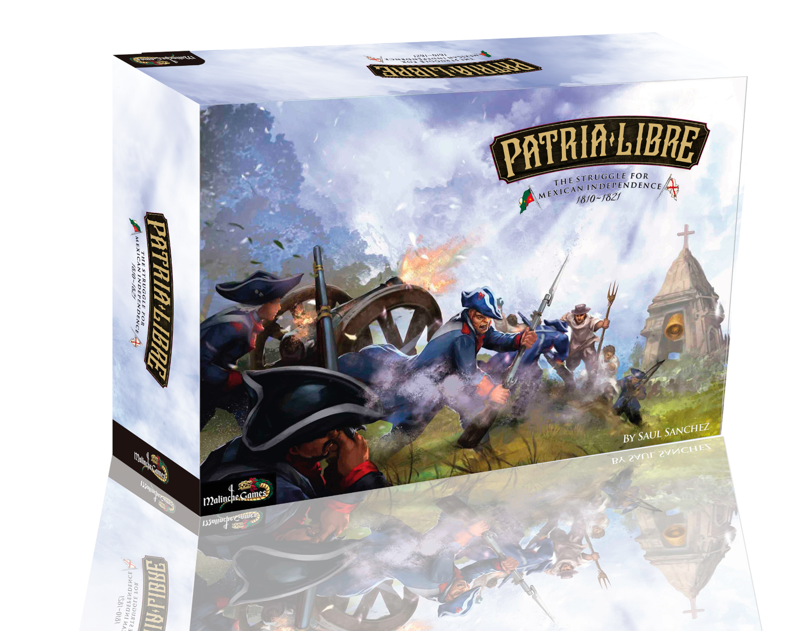 Tiene cuatro modos de juego: Uno vs uno, dos vs dos, tres jugadores con Iturbide y modo solitario. Patria Libre es un juego que conmemora la Independencia de México lograda cerca de 1821. En el juego se activan cinco cartas de puntuación (una por cada región), al final de cada una podría cumplirse algun un objetivo de victoria (10 o mas PV, control en principales ciudades enemigas) y terminar la partida.  Patria Libre logra su fondeo por medio de una campaña de Kickstarter.